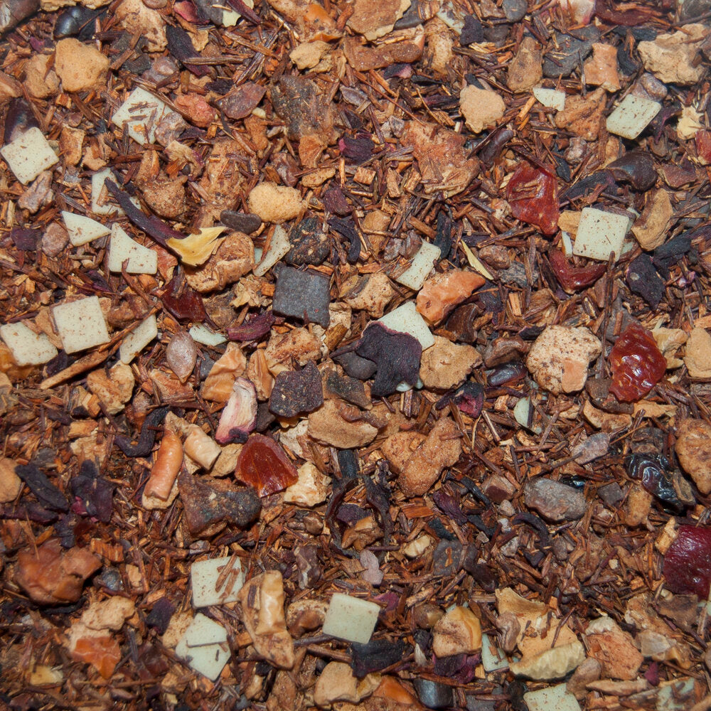 Strawberry Kisses organic blend has been a top 10 tea in the True Leaf Tea line for over a decade. This fan favorite can be enjoyed hot or over ice. With organic strawberry, organic apple, organic rooibos, organic hibiscus, organic cocoa beans, white and dark chocolate bits and organic rose hips with natural chocolate, strawberry, vanilla and cream flavoring, you simply can't go wrong.