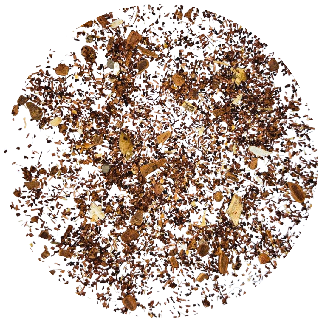 Get ready for a spicy-sweet blend. This special herbal honeybush tea has apple bits with cinnamon, chamomile flowers, orange peel, and licorice root. Kids and adults alike will enjoy this warm, cozy, caffeine-free tea. If you love apple cider, this is the tea for you!