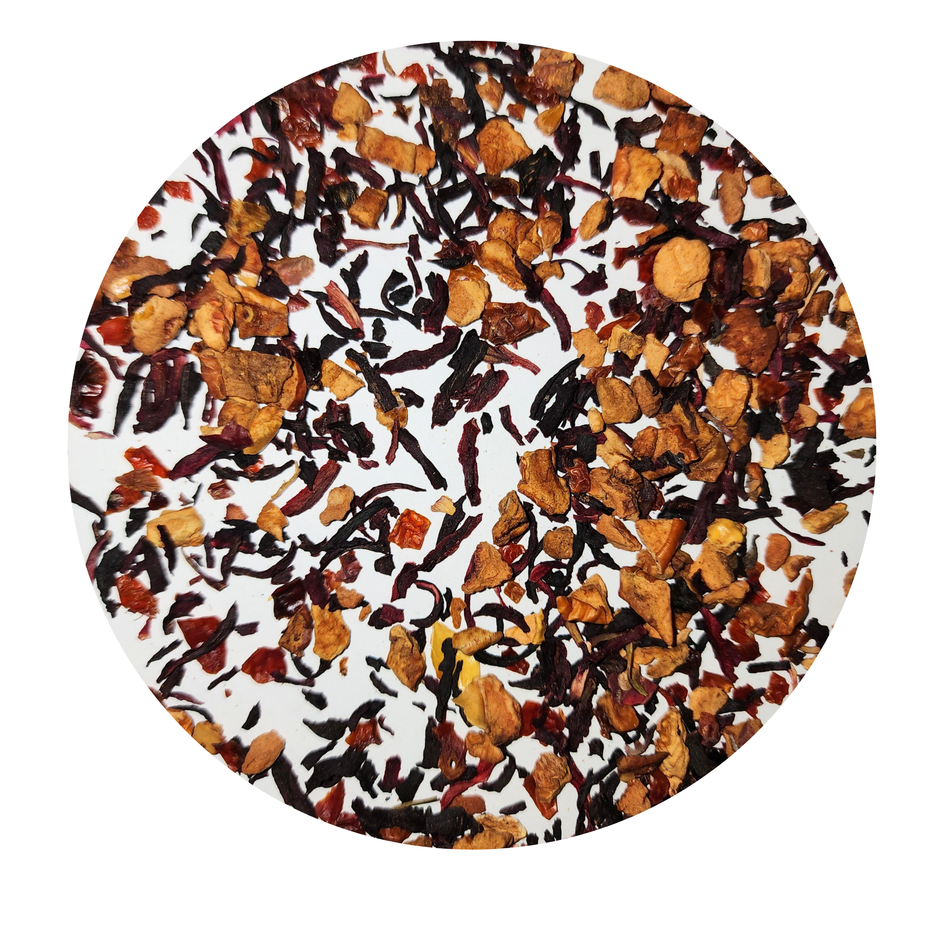 If you love the sweet-tart character of cranberry and the crunchy flavor of fresh apples, then you will love this blend! Apple pieces mixed with rosehip pieces, hibiscus petals, and all-natural cranberry flavoring gives this blend an amazing autumnal flavor that the entire family will enjoy.