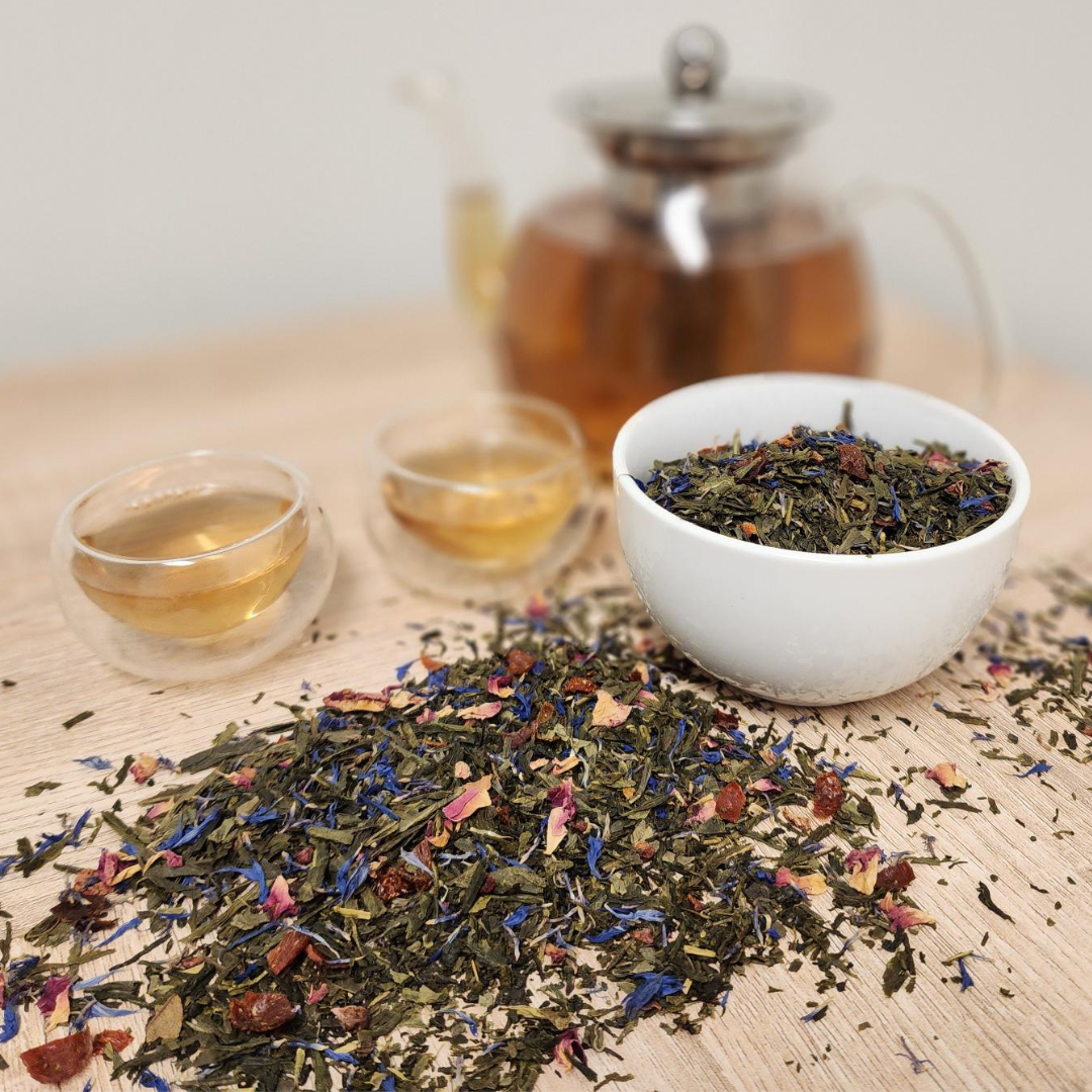 It’s just as elegant as it sounds! This delicious, floral, green tea opens up with the scent of fresh roses and tree blossoms with a slight citrus note on the finish. This beautiful tea is simply stunning with bits of cornflower petals, rose-hip, rose petals and raspberry pieces. It opens with a delicious floral grapefruit note similar to spring tree blossoms with a fresh, green tea finish. True romance and luxury in every cup!