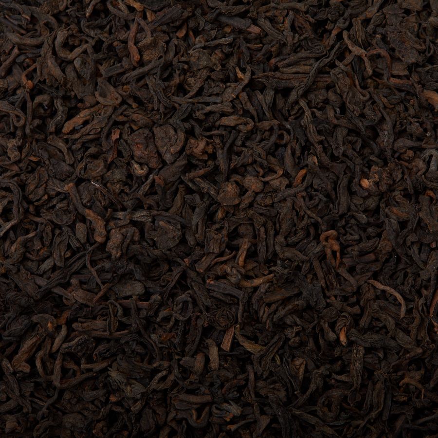This cooked, black tea from the Yunnan Province is aged in climate controlled rooms undergoing a "composting" procedure to encourage bacterial growth by introducing moisture to the regularly turned, tended, & drying piles of tea leaves. The result is the Pu-erh's distinct aroma and a perfect balance of flavor with high level of antioxidants & probiotics.