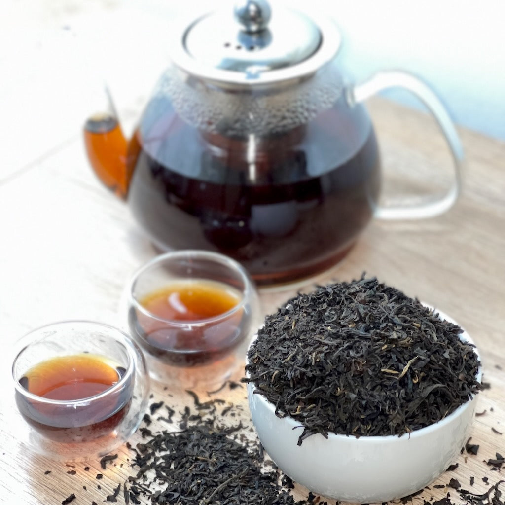 This brisk black tea from the Fujian province of China is carefully dried over a pine fire and sometimes referred to as “smoked tea.” The drying process imparts a sweet yet earthy and smoky aroma giving it it’s distinct bold flavor. This tea is usually enjoyed hot but it does take ice well. This organic Lapsang Souchong can be used as a meat rub to give your BBQ a little smokey zing!