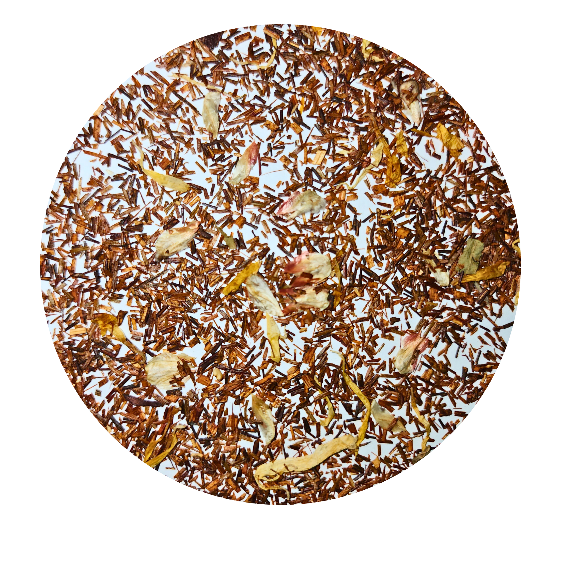 Rooibos blended with pecan bits and vanilla bean creates creamy caramel notes (also blended with pomegranate pieces and plum petals). This is a decadent dessert without the guilt!