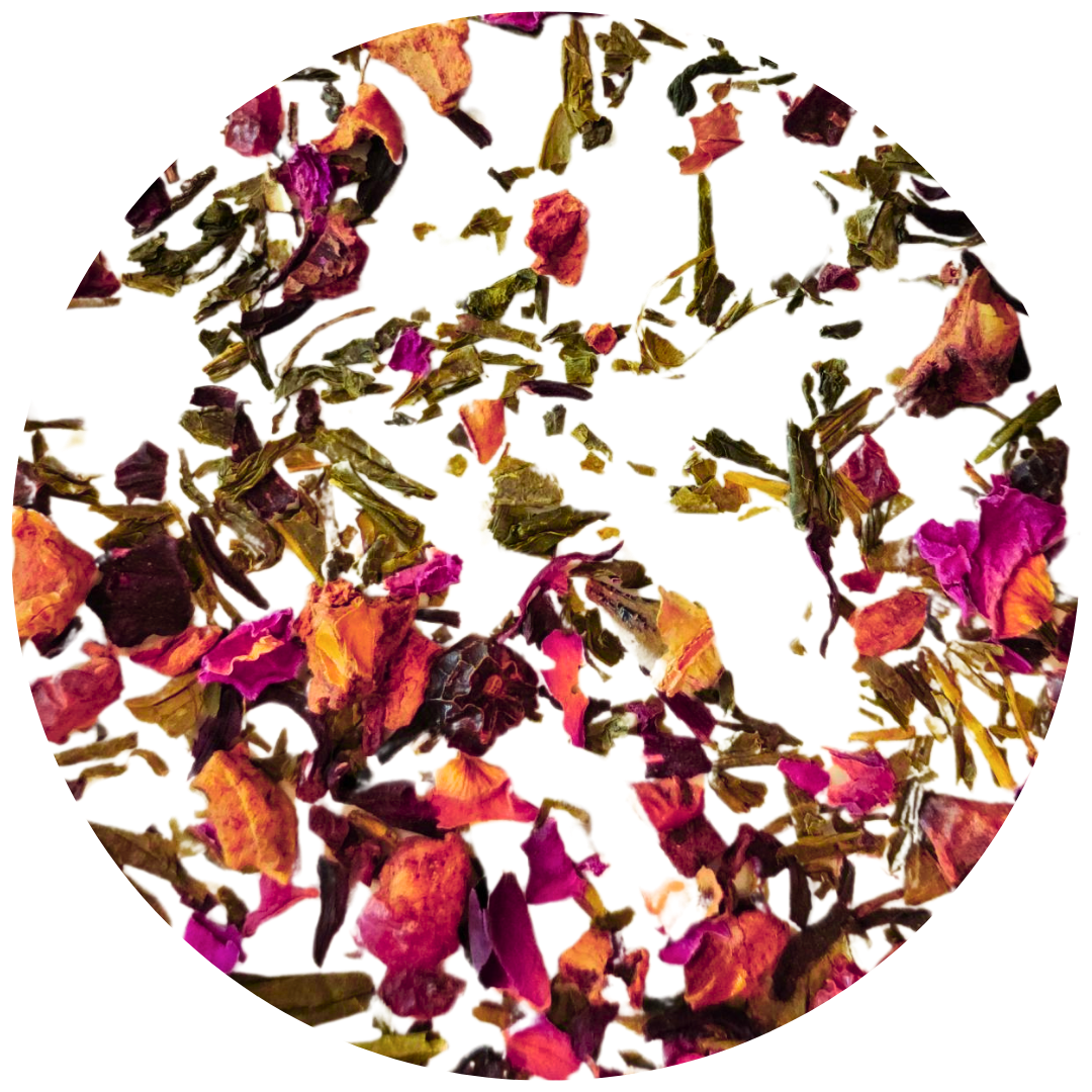 Organic Green tea from China blended with sweet, wild raspberries and delicate rose buds produce a party in your cup! Loaded with antioxidants and vitamin C, this tea is delicious served hot or cold any time of day.